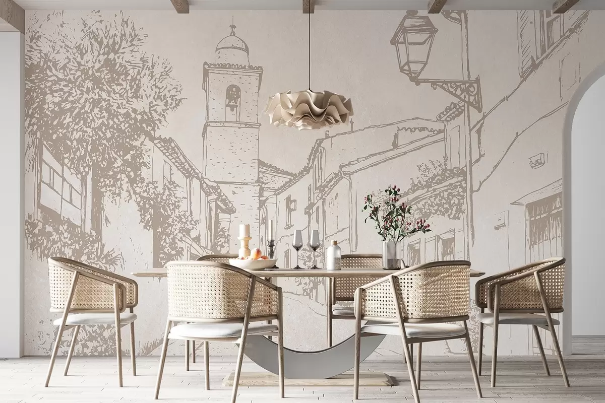 Papier peint Rue de la ville, belle architecture, bâtiments, Méditerranée, couleurs beiges N° w03346