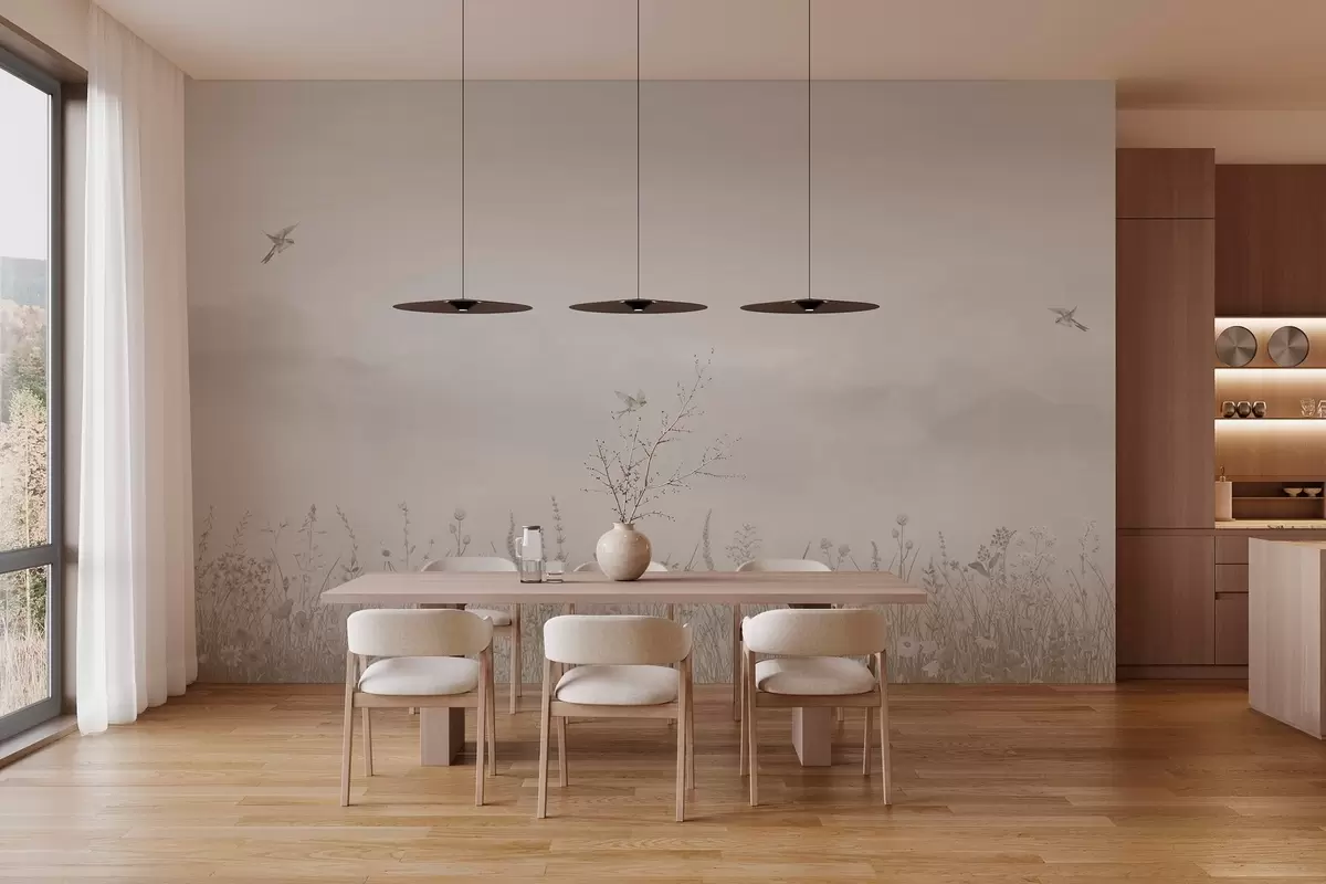 Papier peint Fleurs sauvages et ciel brumeux dans les tons beiges N° w03391v2