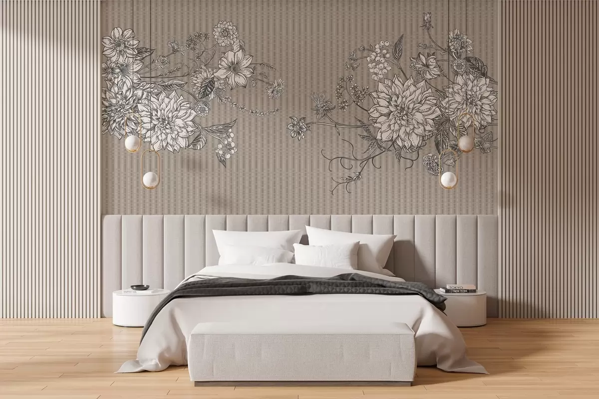 Papier peint Fleurs graphiques sur fond mat dans les tons beiges N° w03395