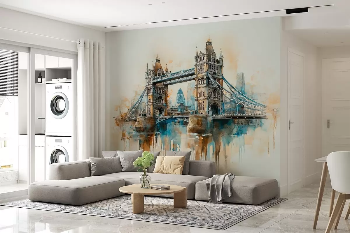 Papier peint Tower Bridge en technique de peinture à l'aquarelle N° w03396