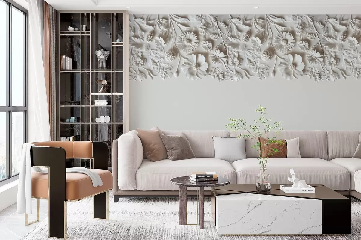 Papier peint Imitation de fleurs en bas-relief sur le dessus en couleur lait N° w03398v1