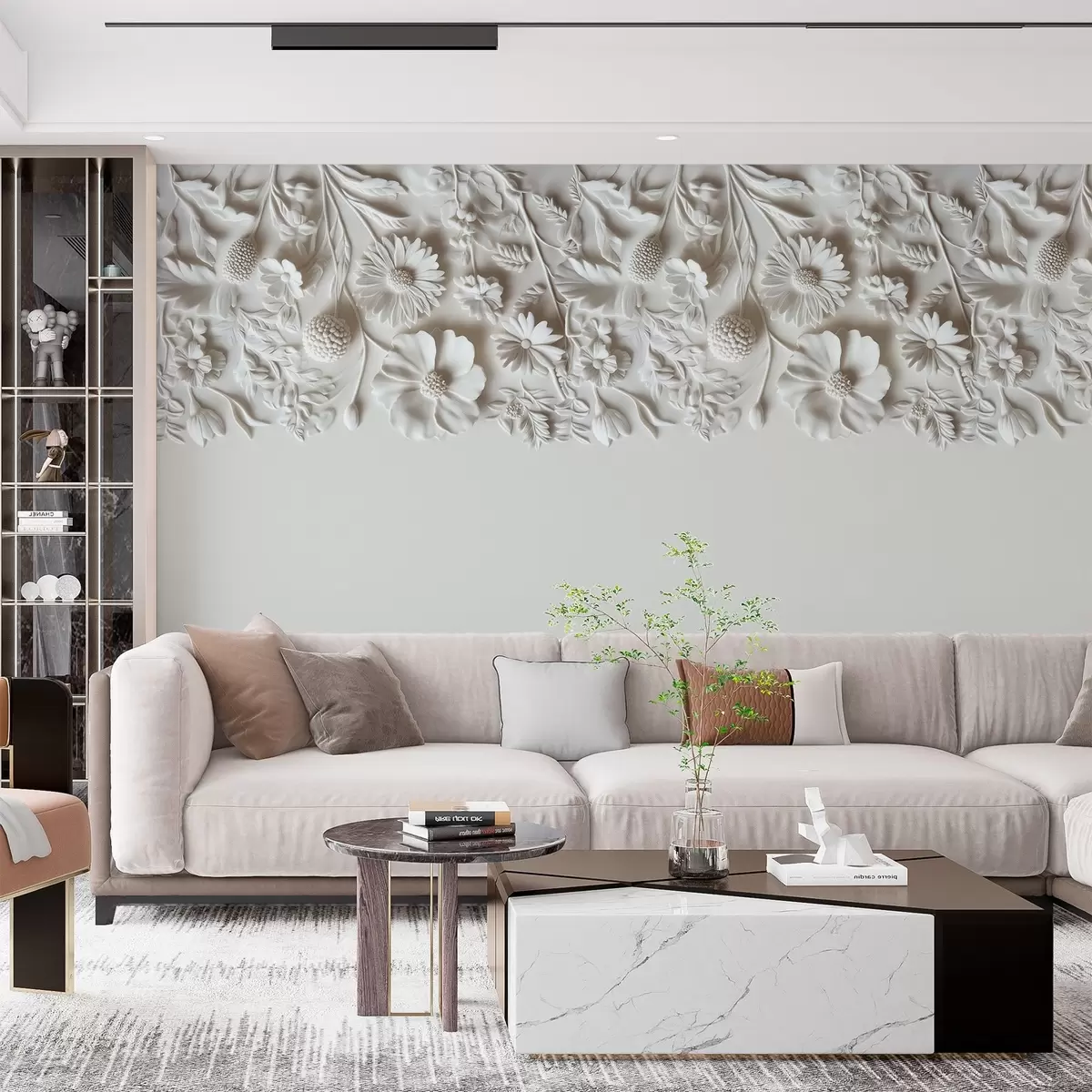 Papier peint Imitation de fleurs en bas-relief sur le dessus en couleur lait N° w03398v1