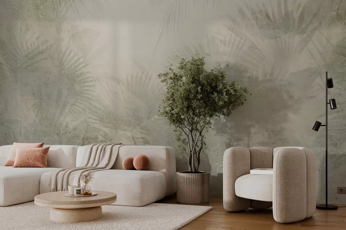 Papier peint Papier peint rétro tropical texturé dans les tons beiges N° w03399