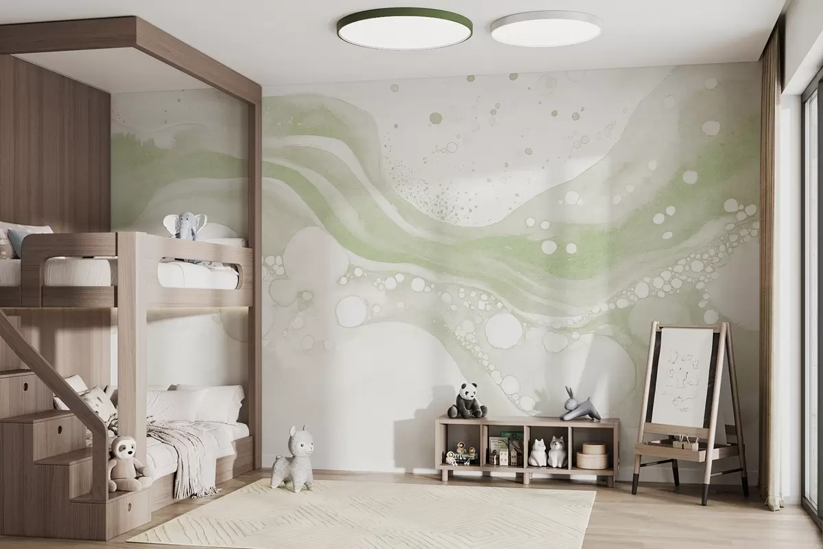 Papier peint Dessin abstrait de style aquarelle, art fluide, couleur verte N° w03403v2