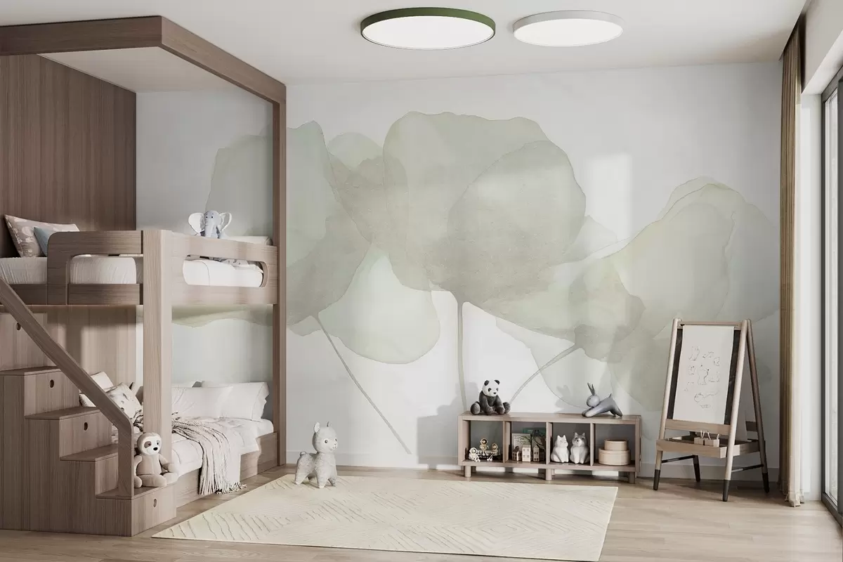 Papier peint Belles fleurs, pastel doux, minimalisme, naturel, rustique, beige et vert N° w03407