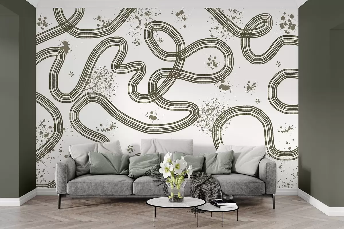 Papier peint Dessin au trait, éclaboussures de peinture, minimalisme, couleur olive N° w03408