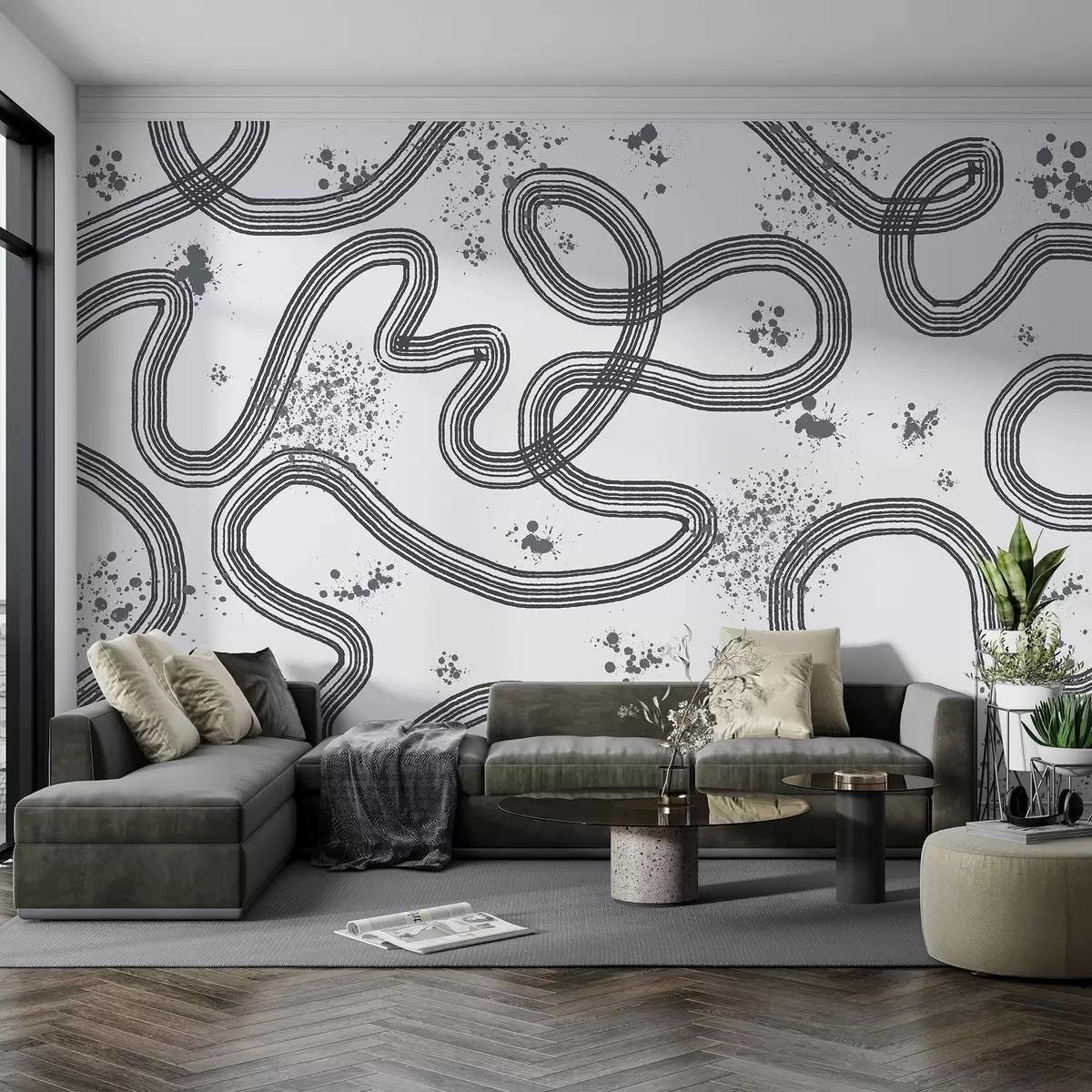 Papier peint Dessin au trait, éclaboussures de peinture, minimalisme, couleur grise N° w03408v2