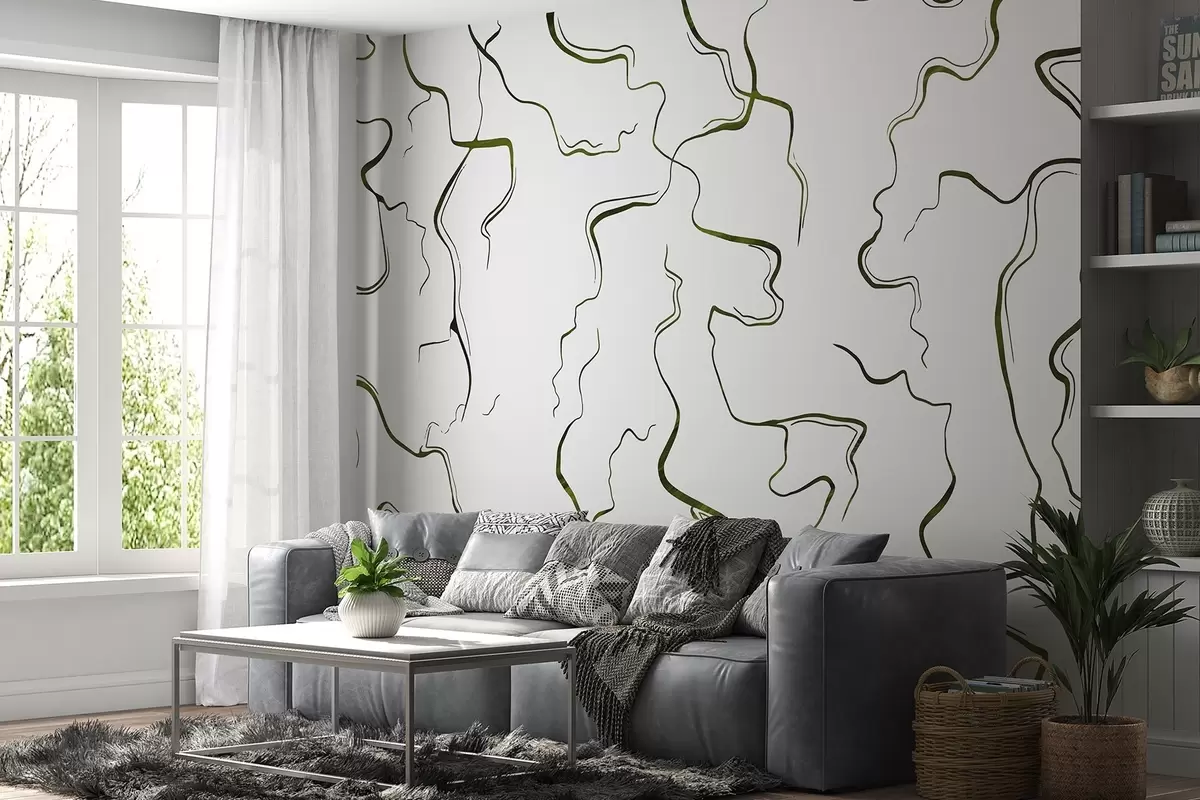 Papier peint Lignes géométriques, style encre, abstraction, couleurs vertes N° w03436