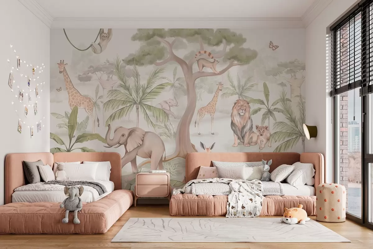 Papier peint Panorama de la jungle avec des animaux N° w03444