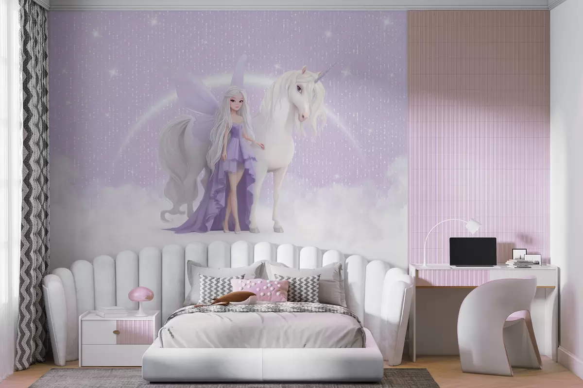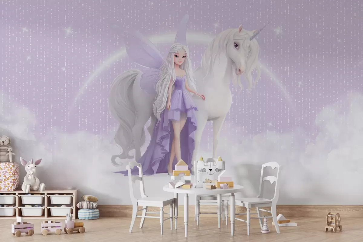 Papier peint Une fée avec une licorne dans les nuages N° w03527