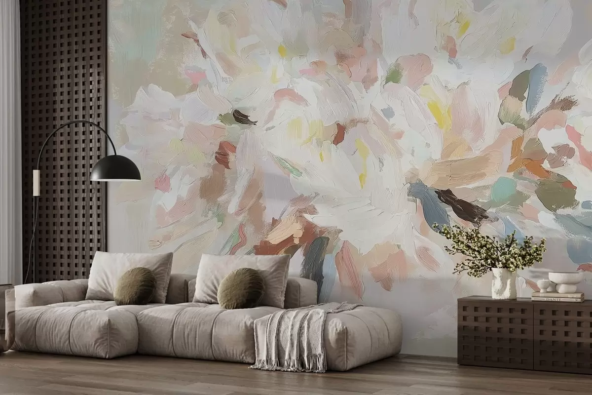Papier peint Fleurs abstraites délicates dans le style de la peinture à l'huile N° w03579