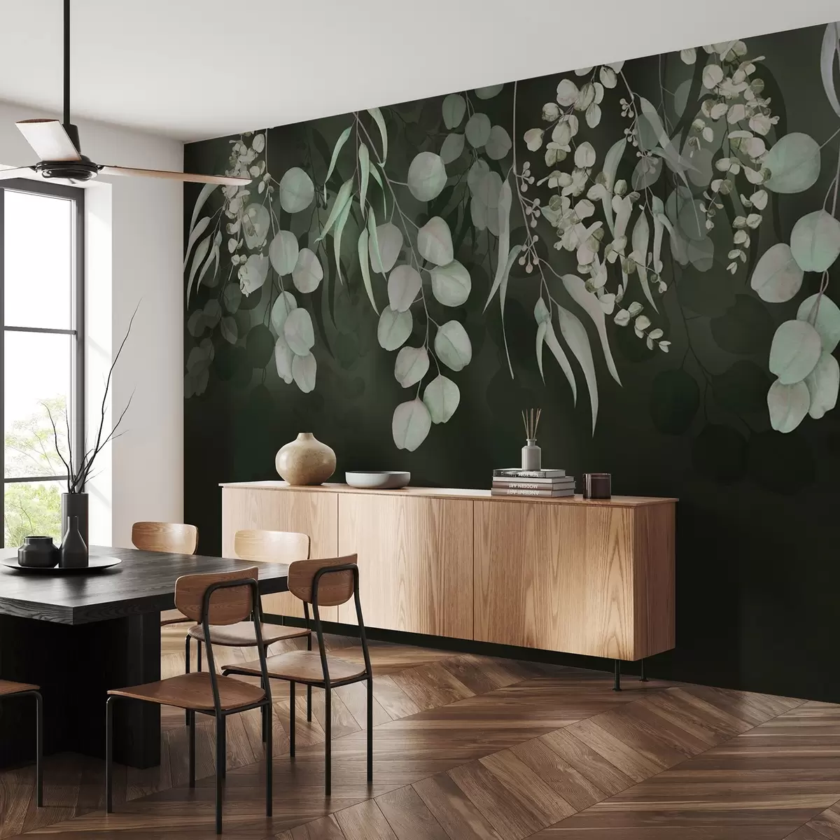 Papier peint Feuilles tropicales sur fond vert foncé, floral N° w03752