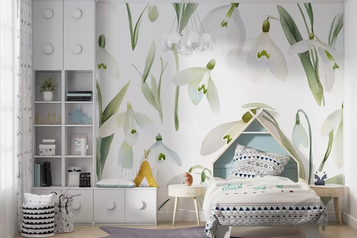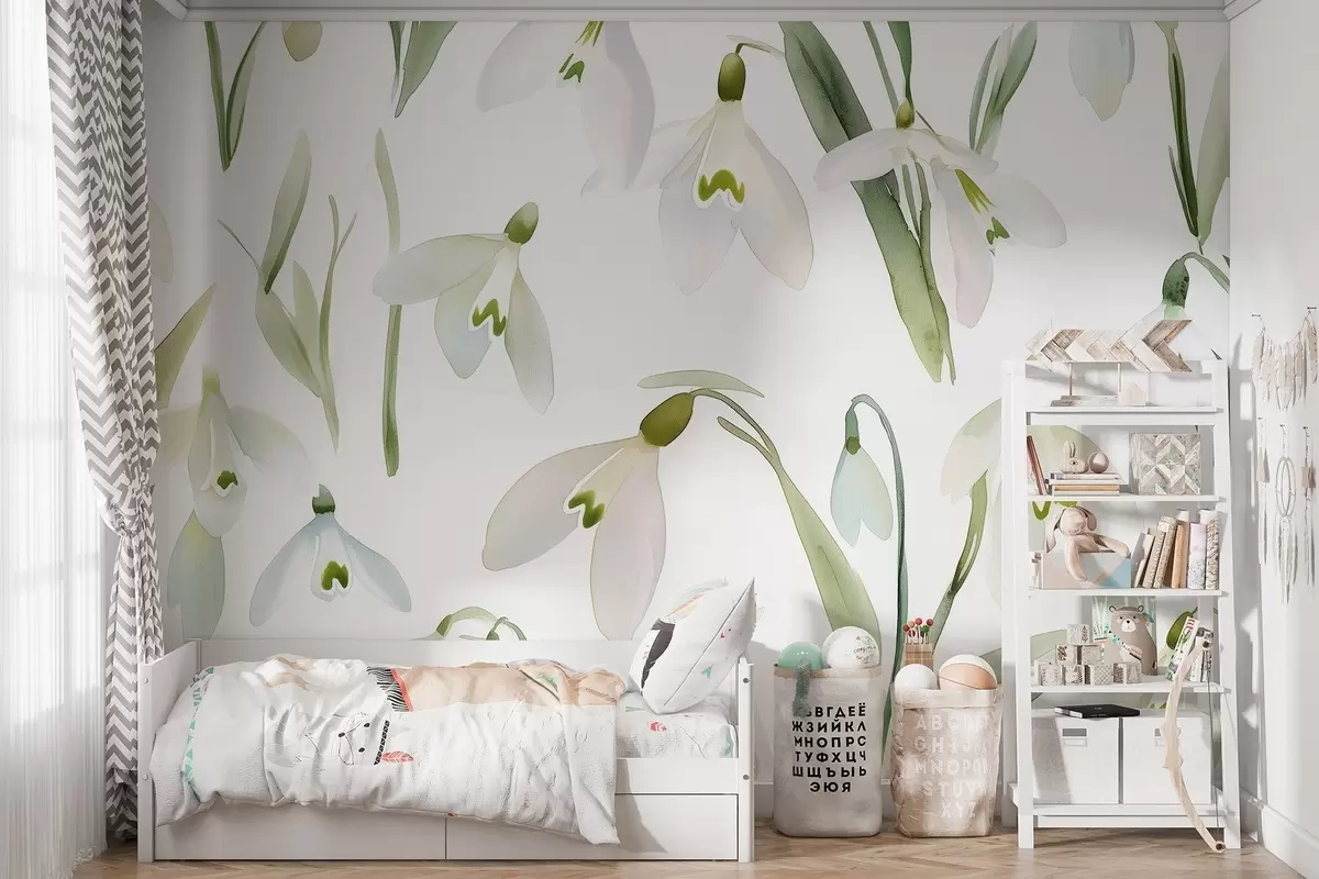 Papier peint Fleurs de perce-neige en style aquarelle, couleurs naturelles N° w03754