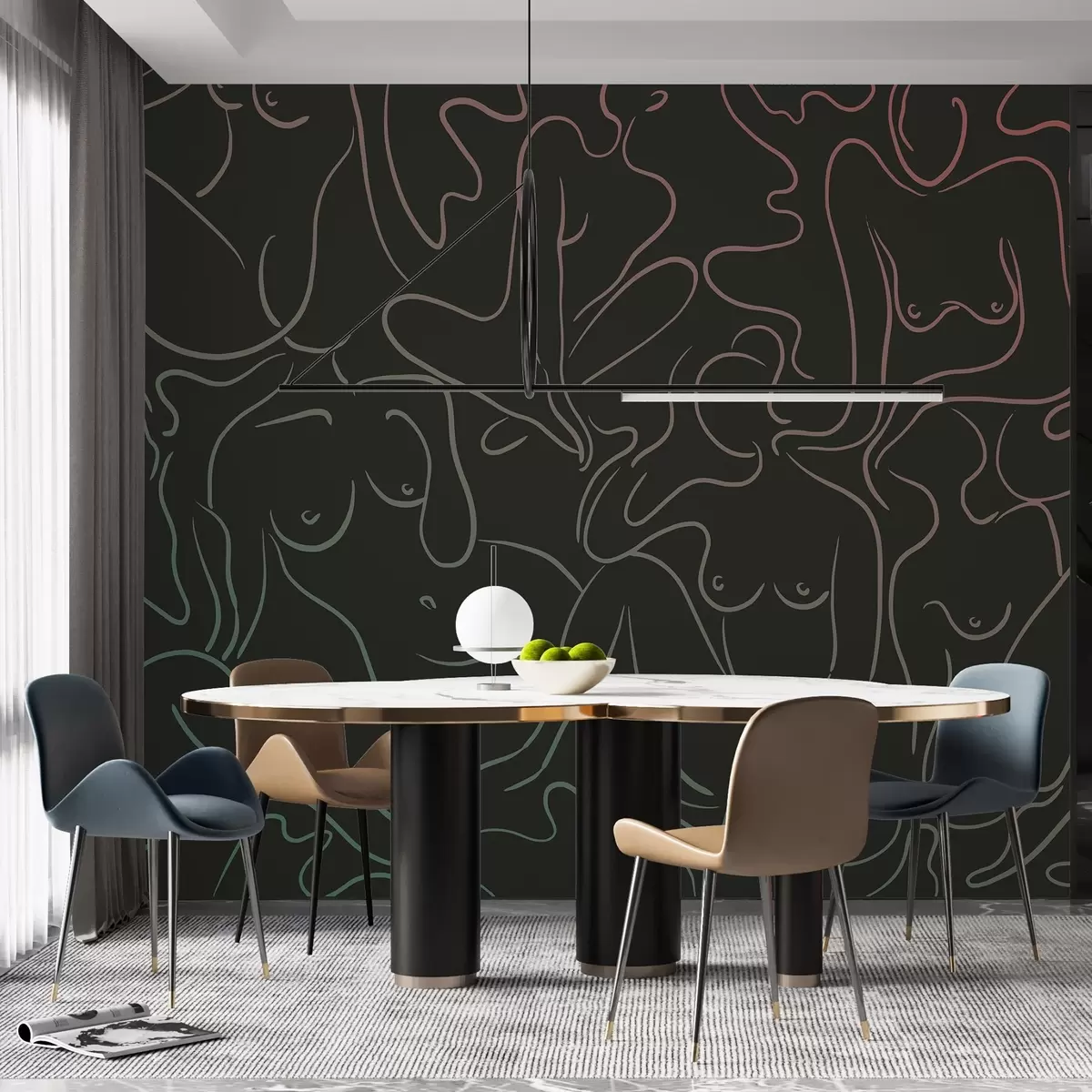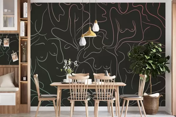 Papier peint Silhouettes anatomiques dessinées au trait, abstraction, fond sombre N° w03755v2