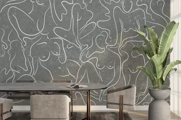 Papier peint Silhouettes anatomiques dessinées au trait, abstraction, fond gris N° w03756v1
