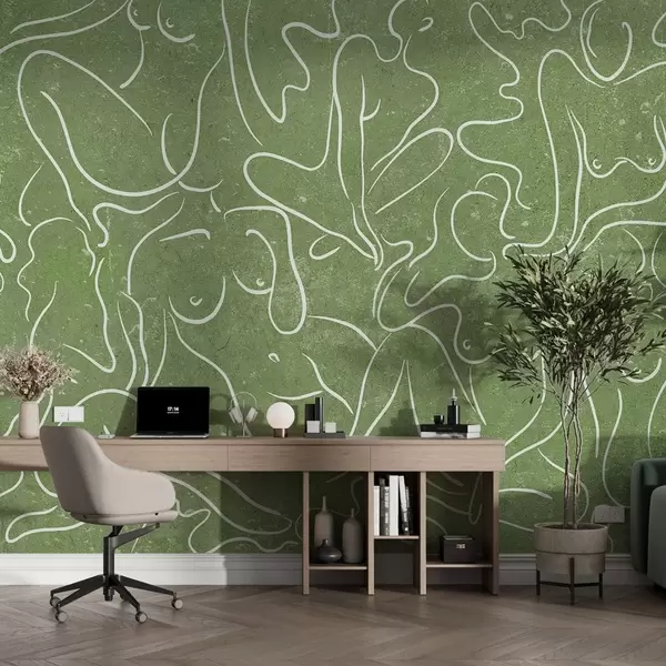 Papier peint Silhouettes anatomiques dessinées au trait, abstraction, fond vert N° w03756v2