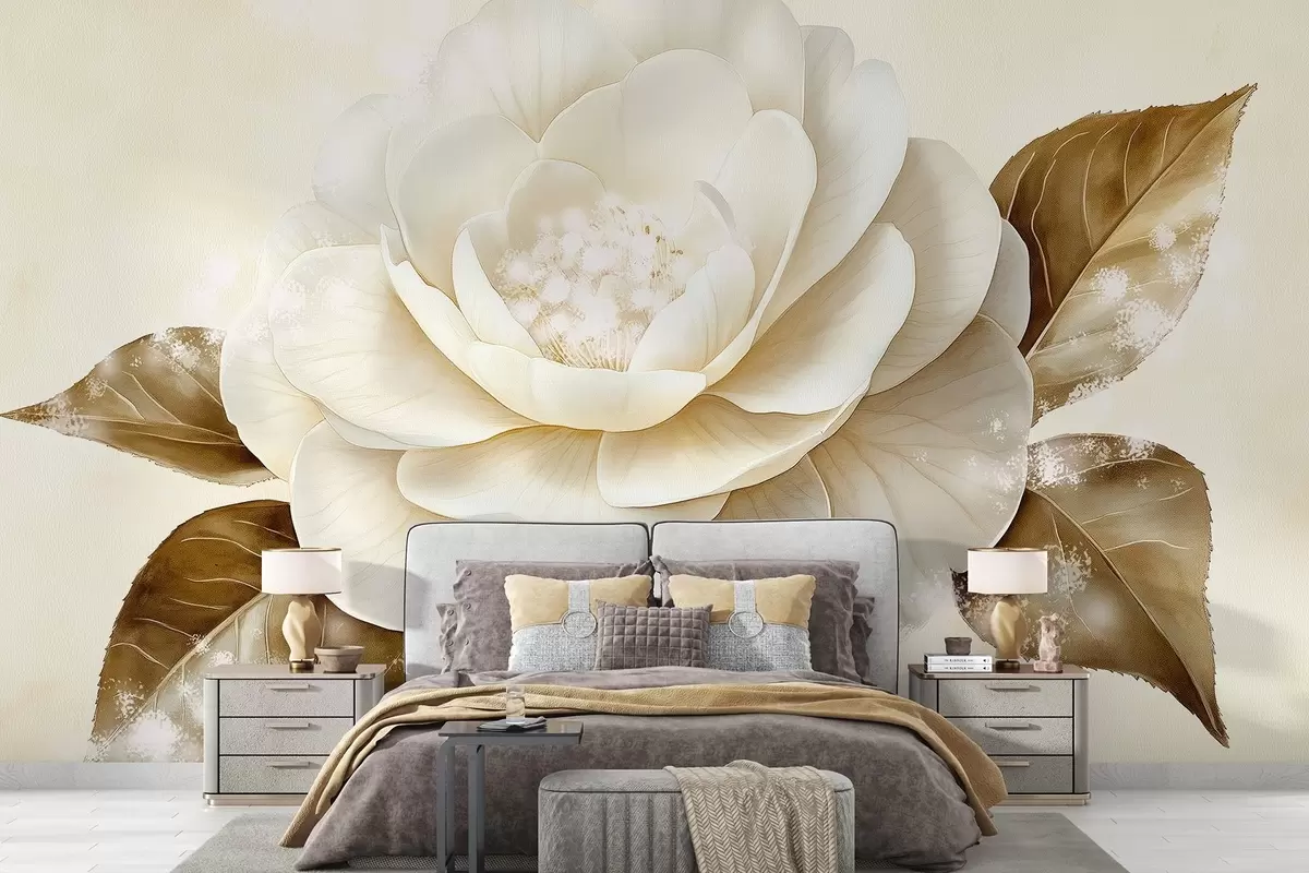 Papier peint Belle fleur de pivoine aux couleurs beiges N° w03757