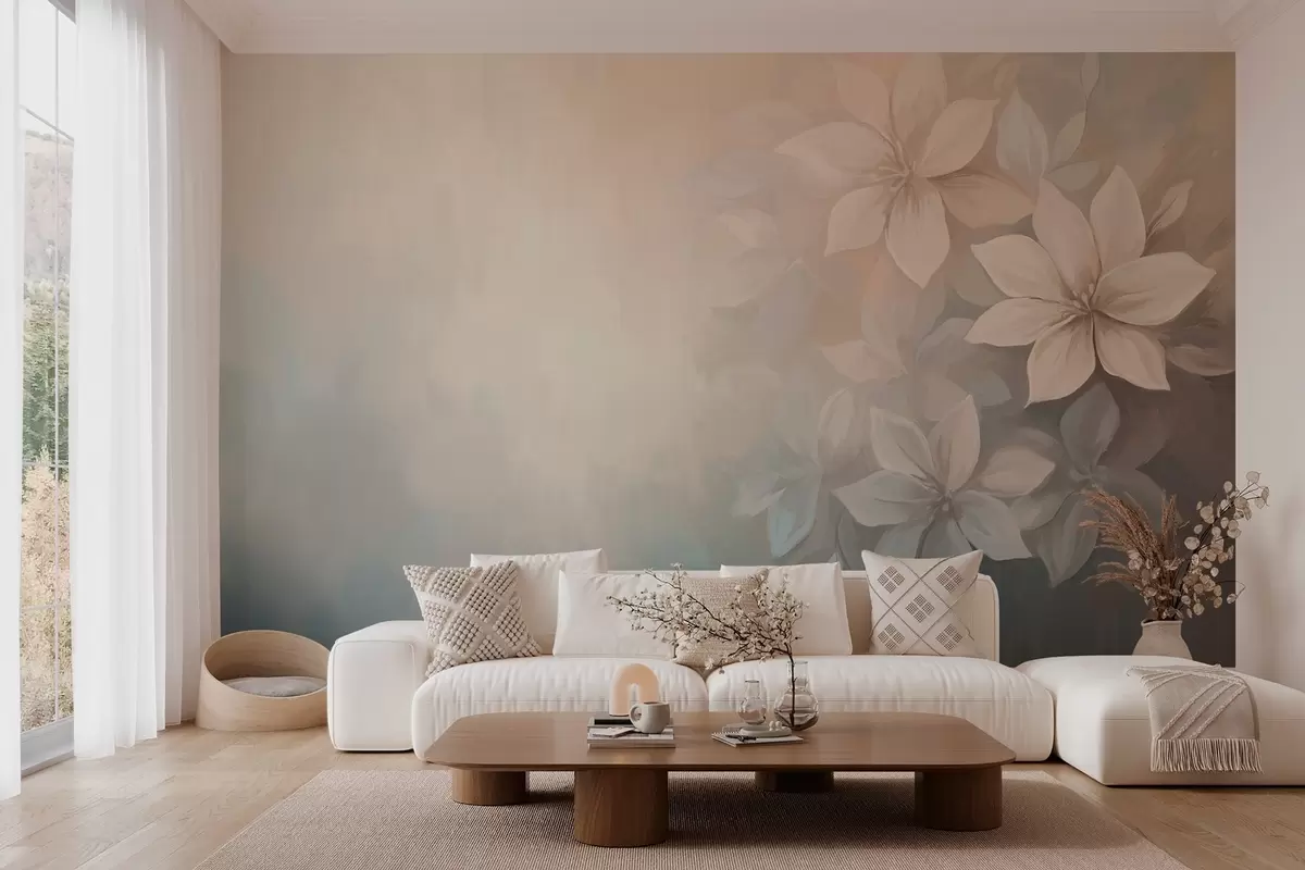 Papier peint fleurs élégantes dans le style de la peinture à l'huile N° w03770