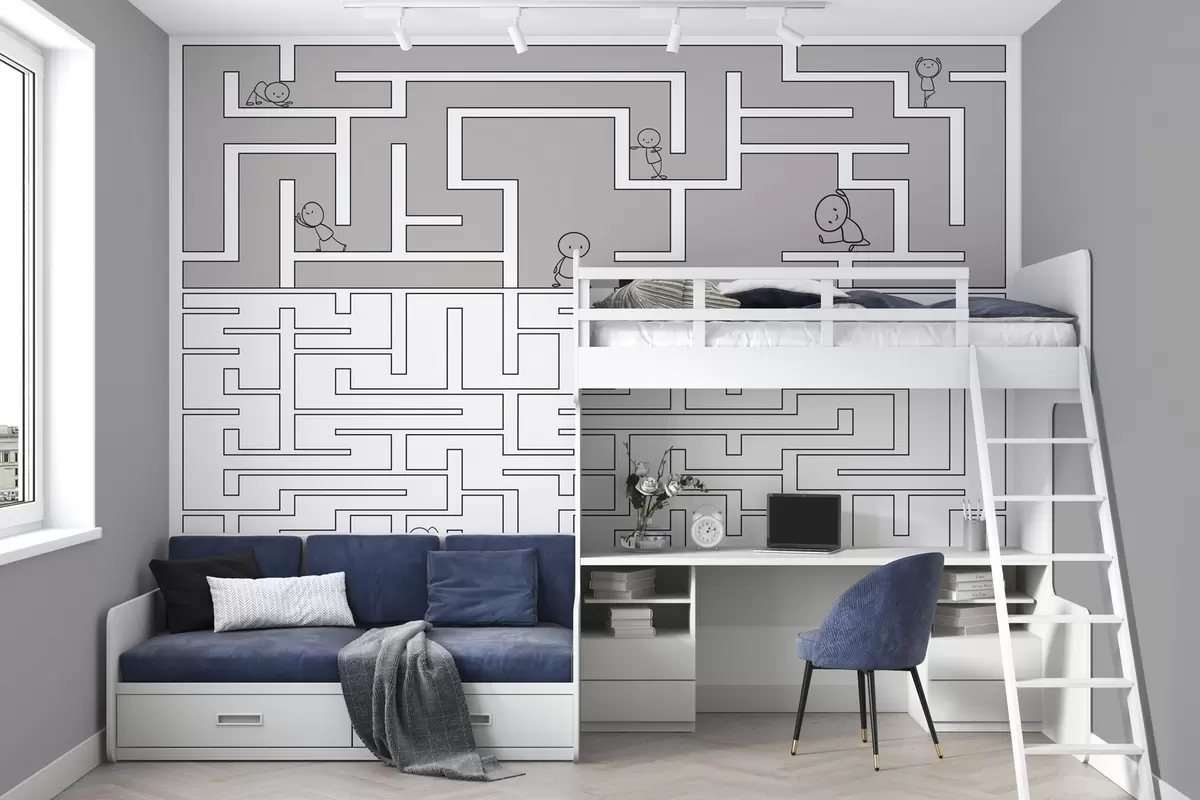 Papier peint Labyrinthe en gris et blanc N° w03873v1