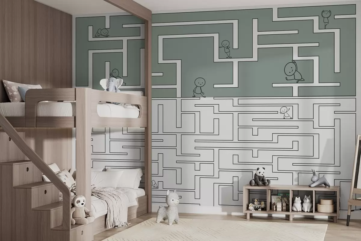 Papier peint Labyrinthe en vert et blanc N° w03873v3