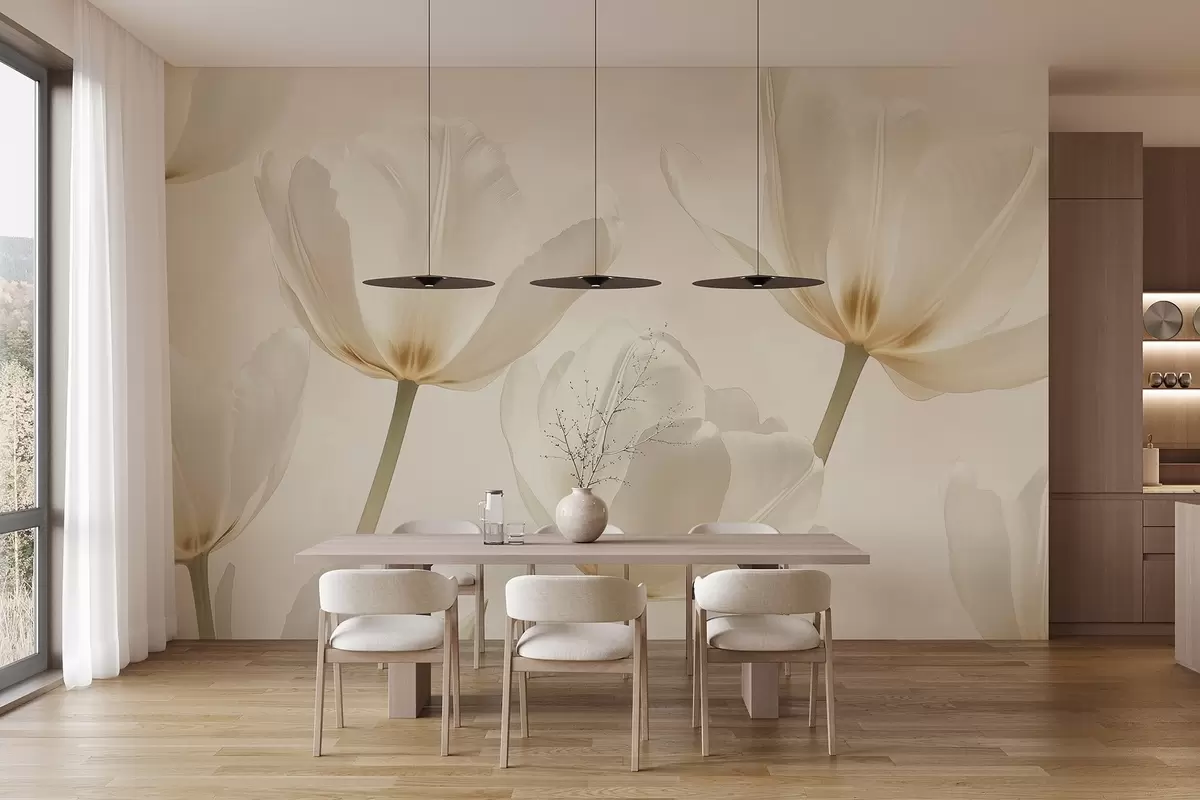 Papier peint Belles tulipes, florales, couleurs beiges, réalisme N° w03877