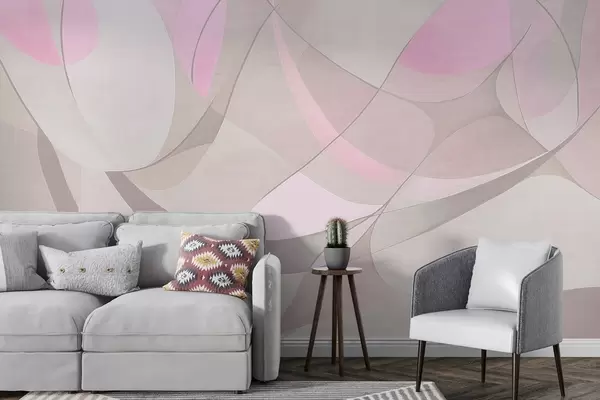 Papier peint Abstraction géométrique, couleurs sourdes rose et beige N° w03878v1