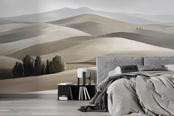 Papier peint Paysages arborés, Toscane, couleurs beige et gris, style huile N° w03880v1