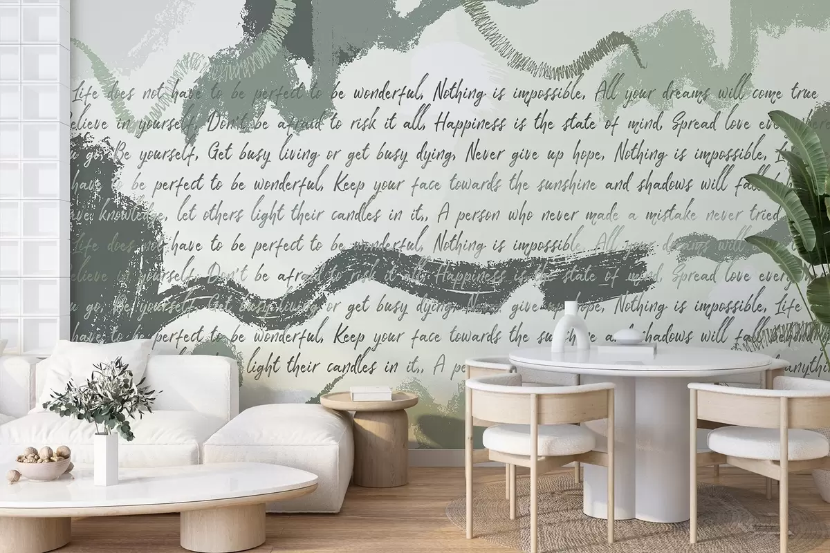 Papier peint Design avec citations inspirantes, abstraction, couleurs vertes N° w03909v1