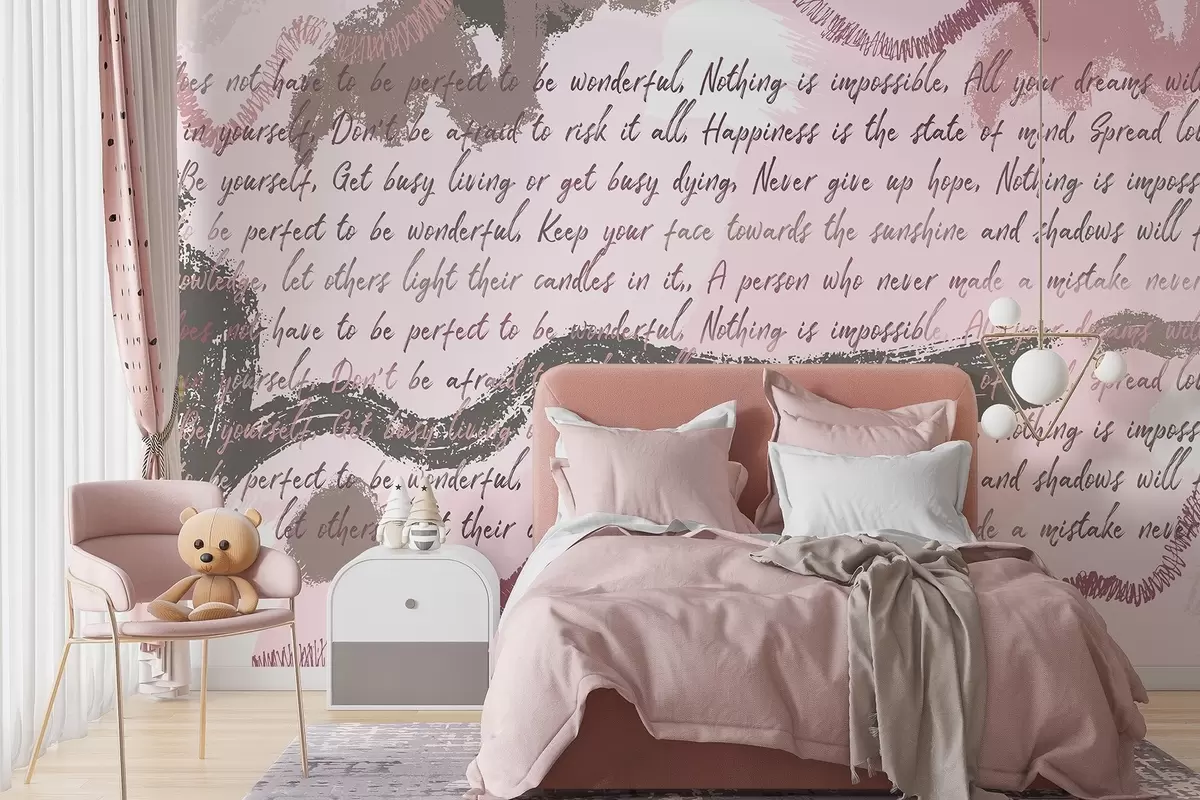 Papier peint Design avec citations inspirantes, abstraction, couleurs roses N° w03909v3