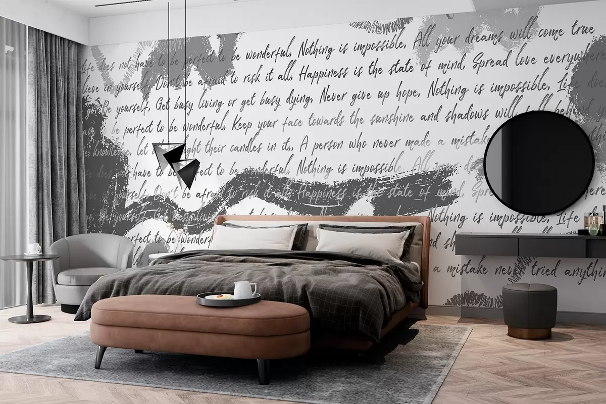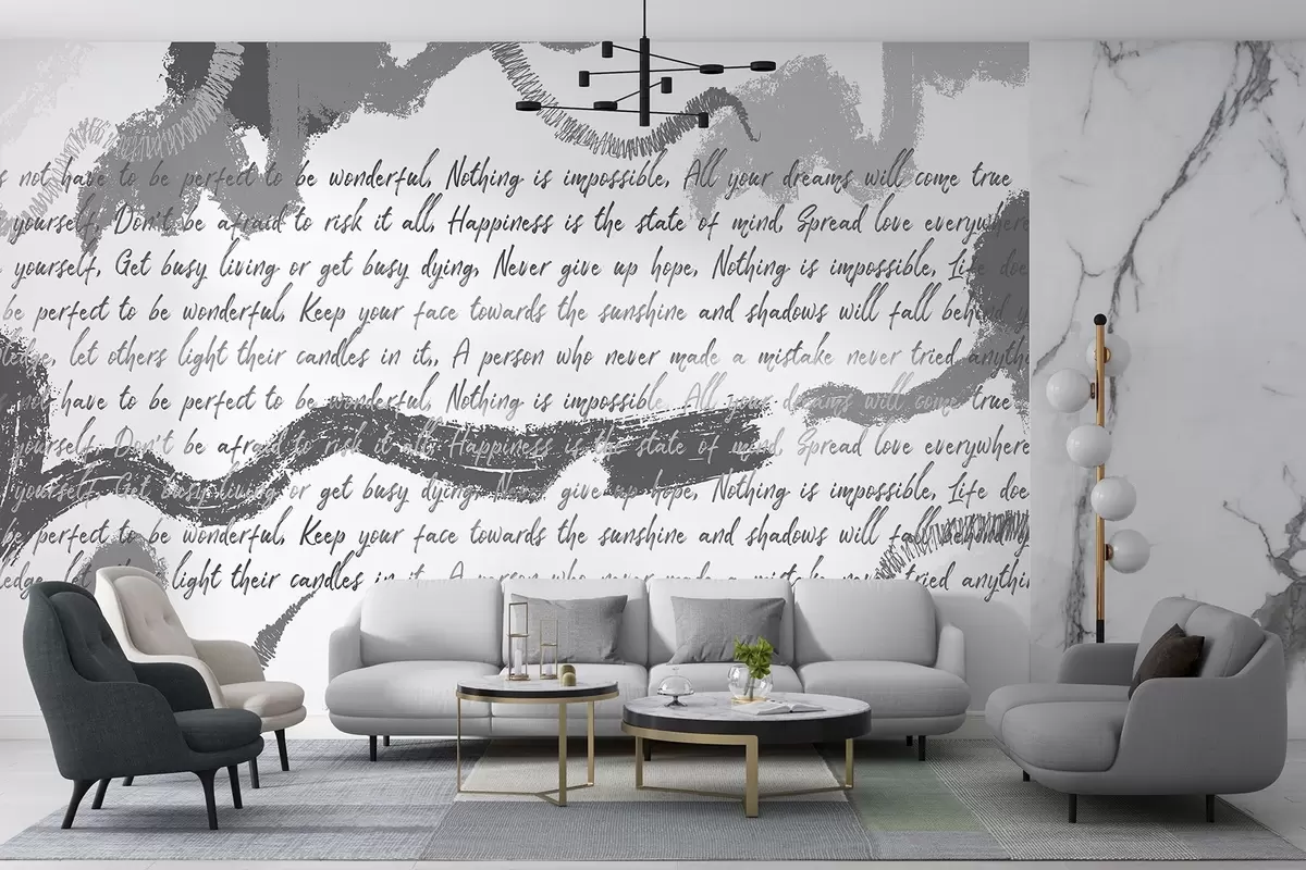 Papier peint Design avec citations inspirantes, abstraction, couleurs grises N° w03909v4
