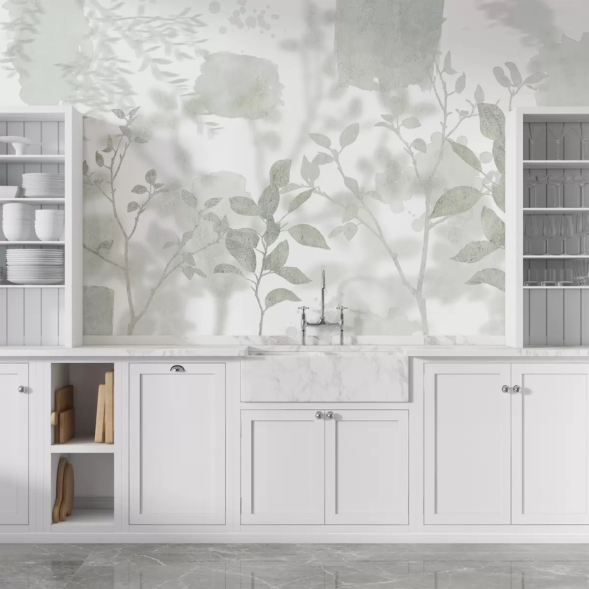 Papier peint Silhouettes d'arbres, branches, nature, aquarelle, couleurs vertes N° w03911v1