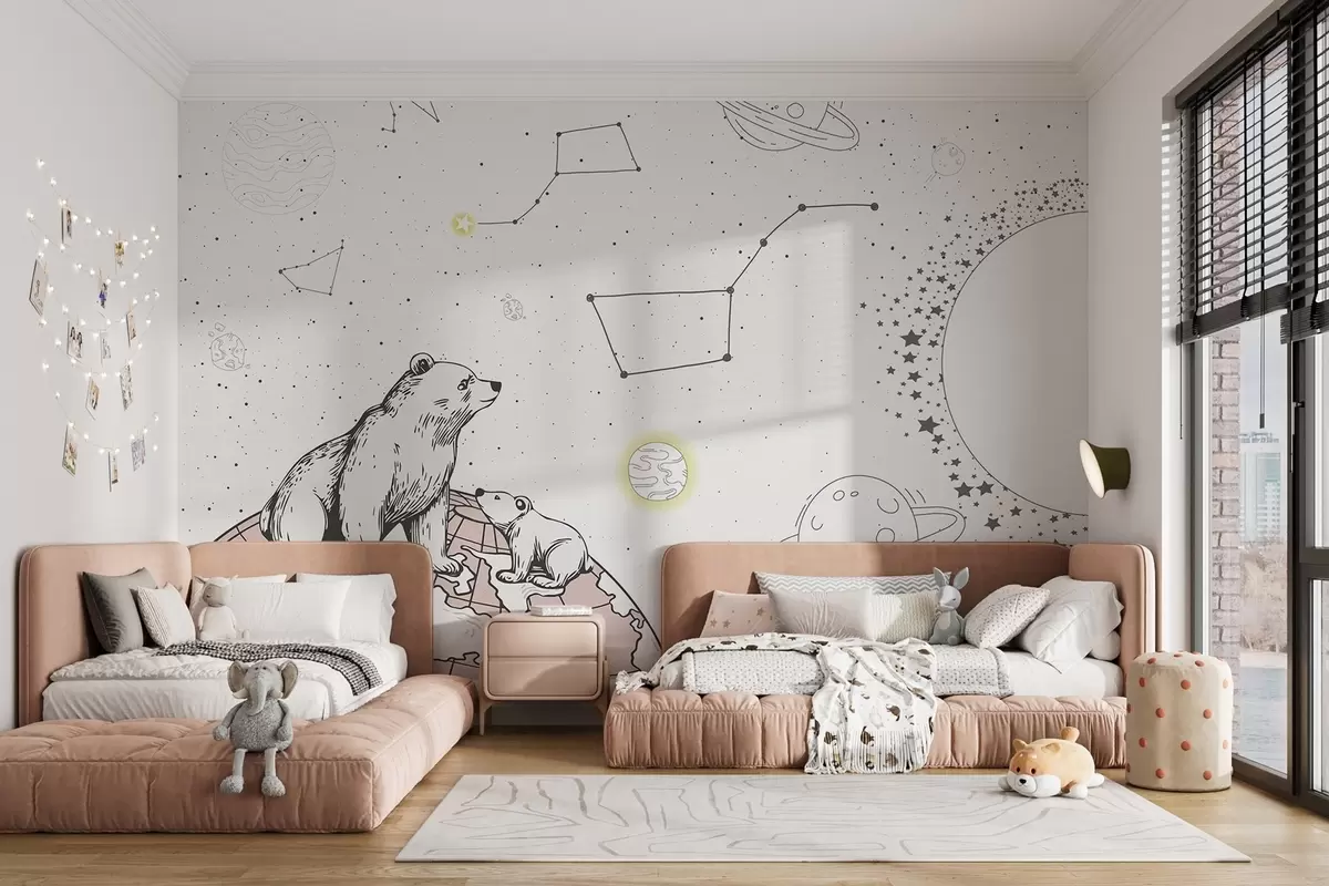 Papier peint Ours et étoiles sur fond brun, thème de l'astronomie N° w04002v2