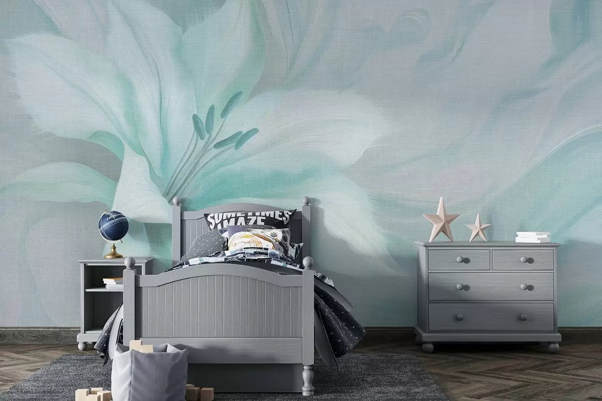 Papier peint Lily flower fluid abstraction, floral, aquamarine colors N° w04006v3