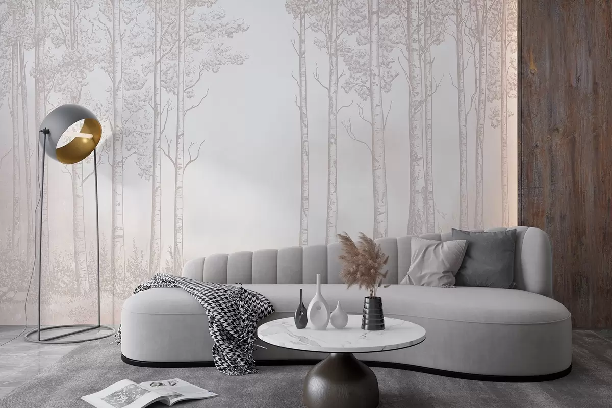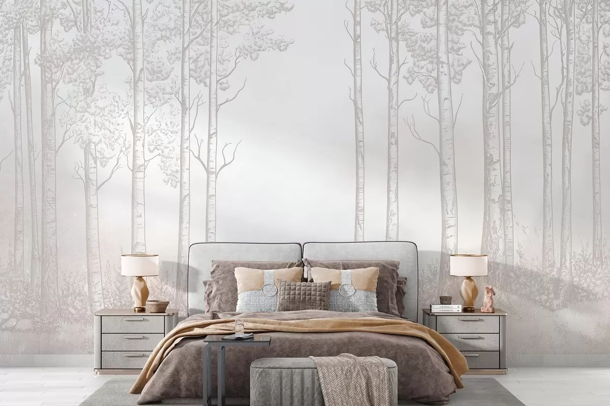 Papier peint Forêt avec bouleaux, minimalisme, nature, palette de couleurs beige N° w04009v3