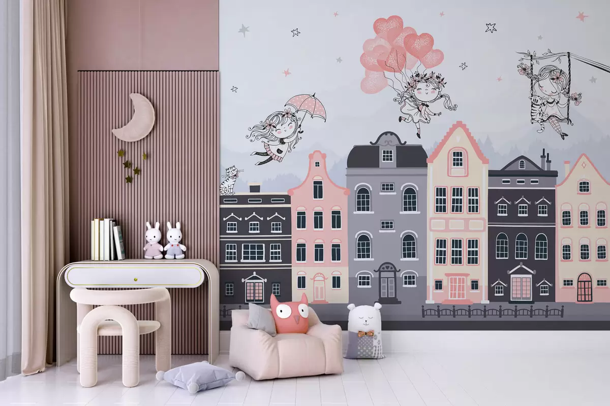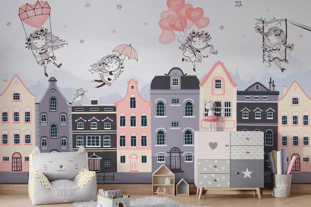 Papier peint Paysage urbain avec des filles mignonnes N° w04014