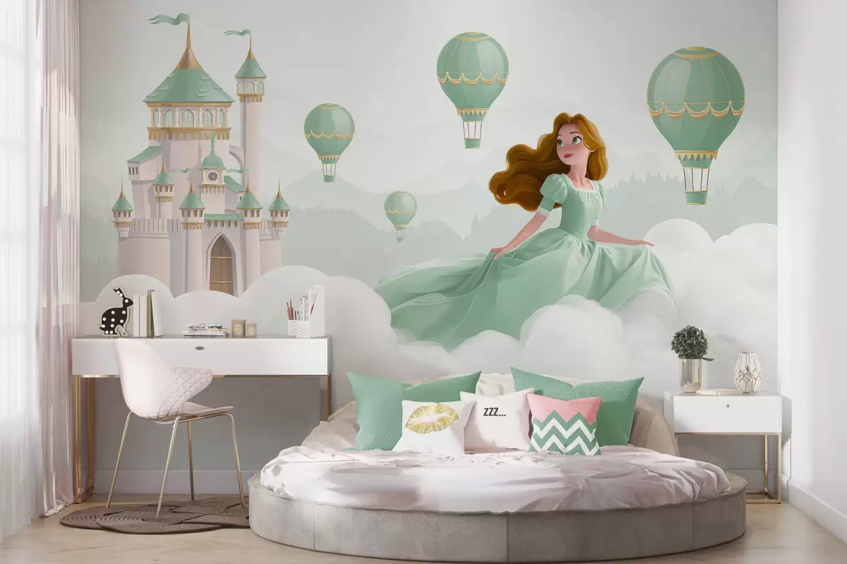 Papier peint Princesse parmi les nuages sur fond de paysage avec château N° w04015v2