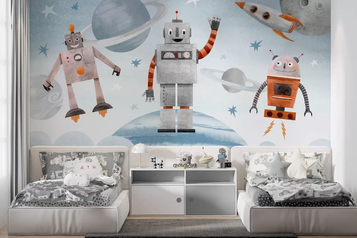 Papier peint Robots dans l'espace en style aquarelle N° w04016