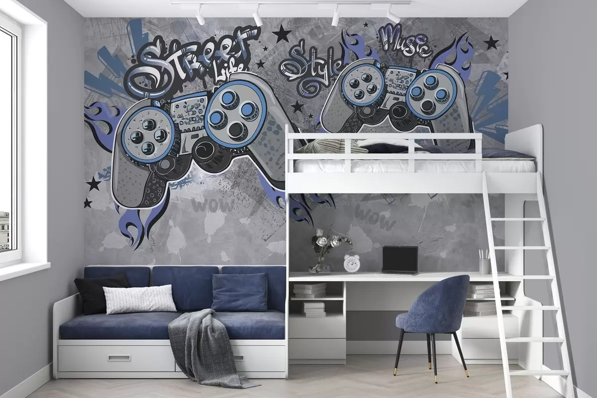 Papier peint Consoles de style street art sur le mur grunge N° w04054