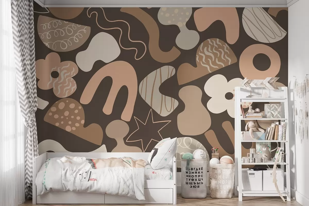 Papier peint Dessin de figures géométriques avec gribouillis, juvénile, fond beige foncé N° w04068v1