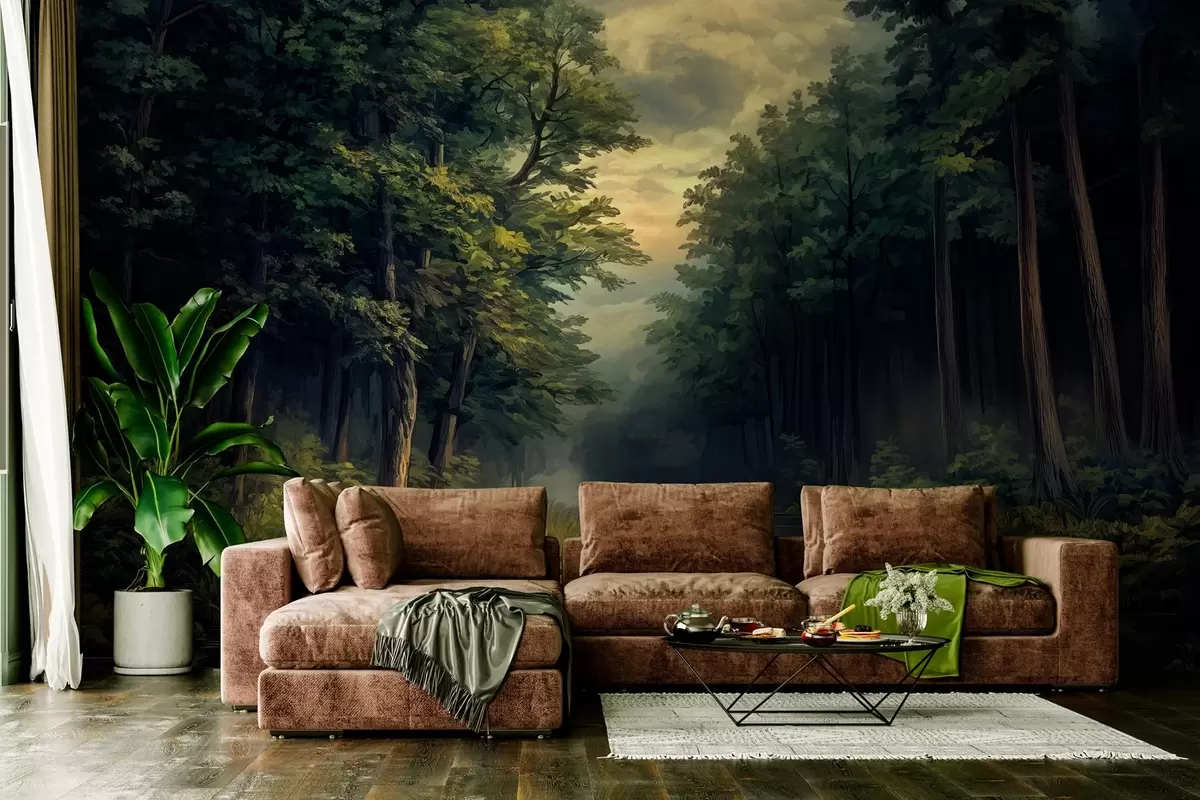 Papier peint Forêt avec cerfs et rivière dans le style de la peinture à l'huile hollandaise N° w04072