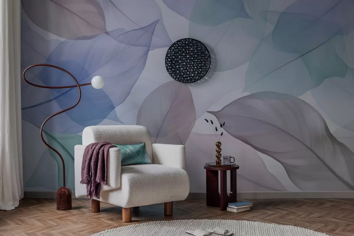 Papier peint Feuilles translucides avec des veines dans les tons bleus et bruns N° w04075
