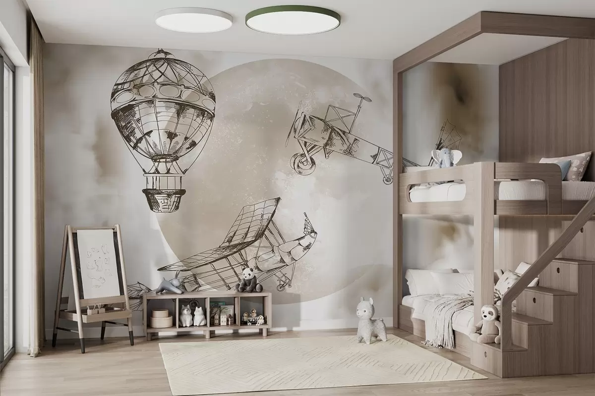 Papier peint Avions rétro sur fond de lune et de nuages N° w04085v1
