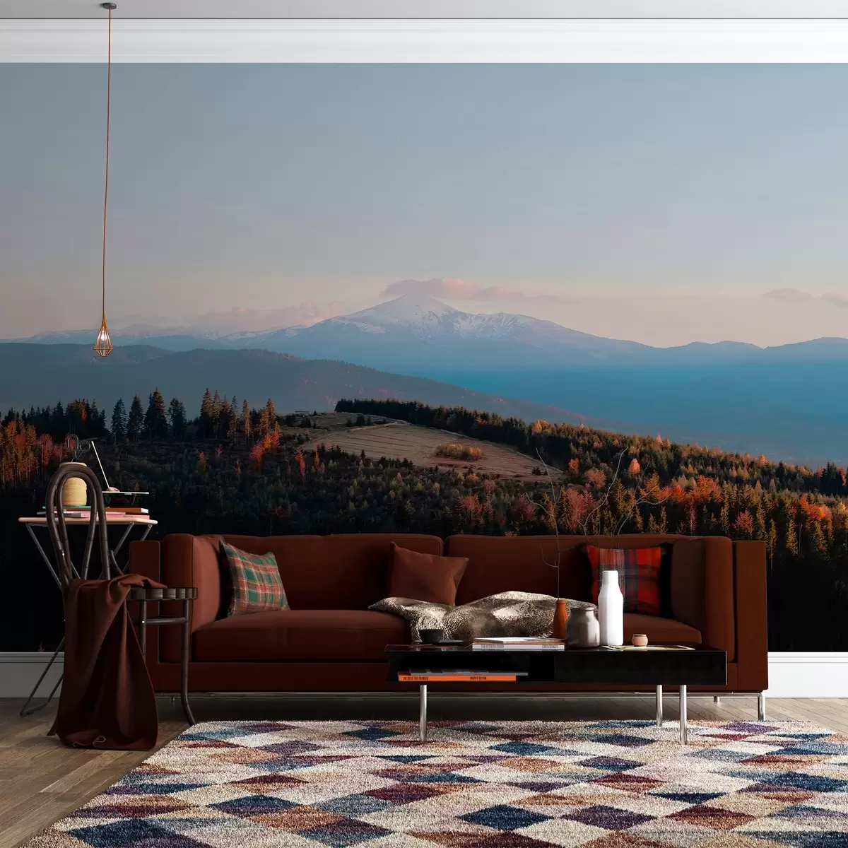 Papier peint Montagnes des Carpates, texture à l'huile, forêt d'automne, ciel couchant N° w04098