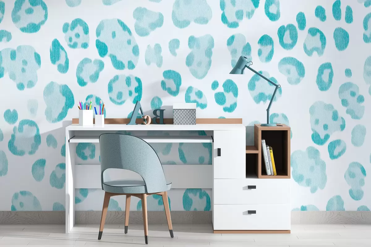 Papier peint Imprimé léopard, texture laine, couleur bleue N° w04112