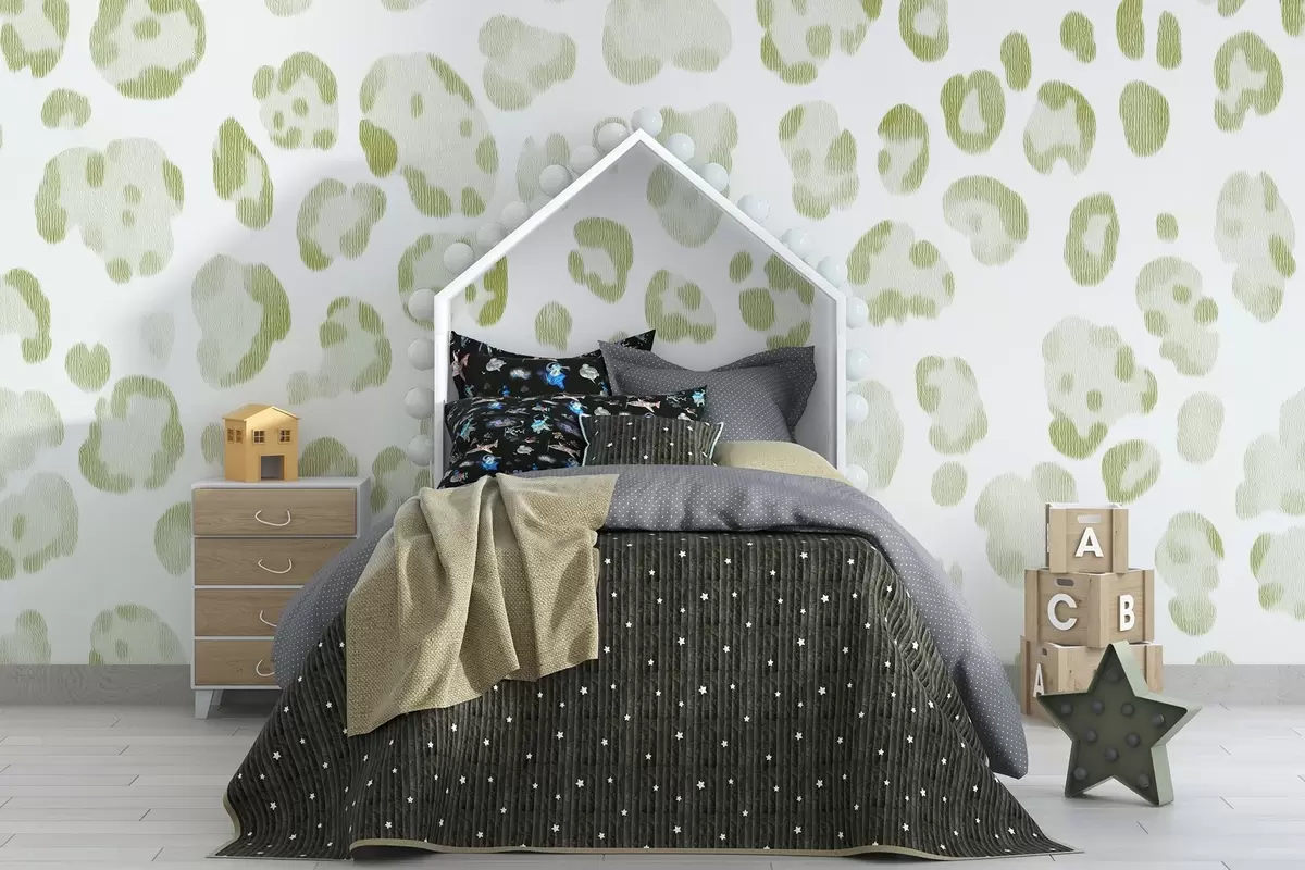 Papier peint Imprimé léopard, texture laine, couleur verte N° w04112v3