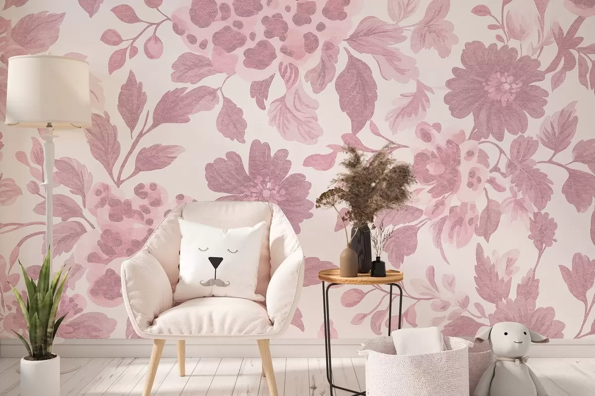 Papier peint Fleurs de style boho avec imprimé léopard, couleur rose N° w04114v3