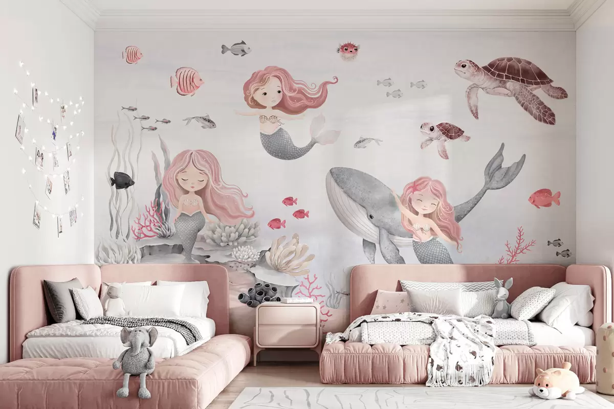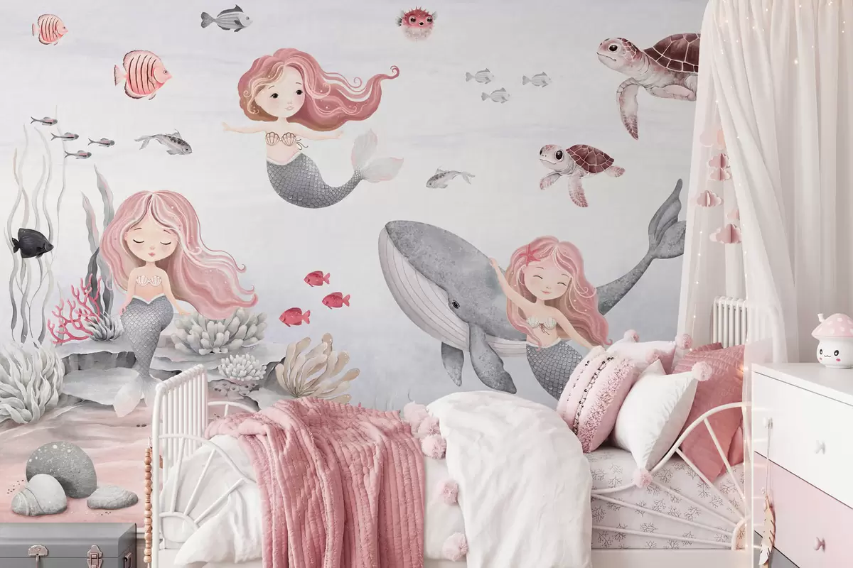 Papier peint Monde sous-marin avec sirènes et poissons N° w04166v1