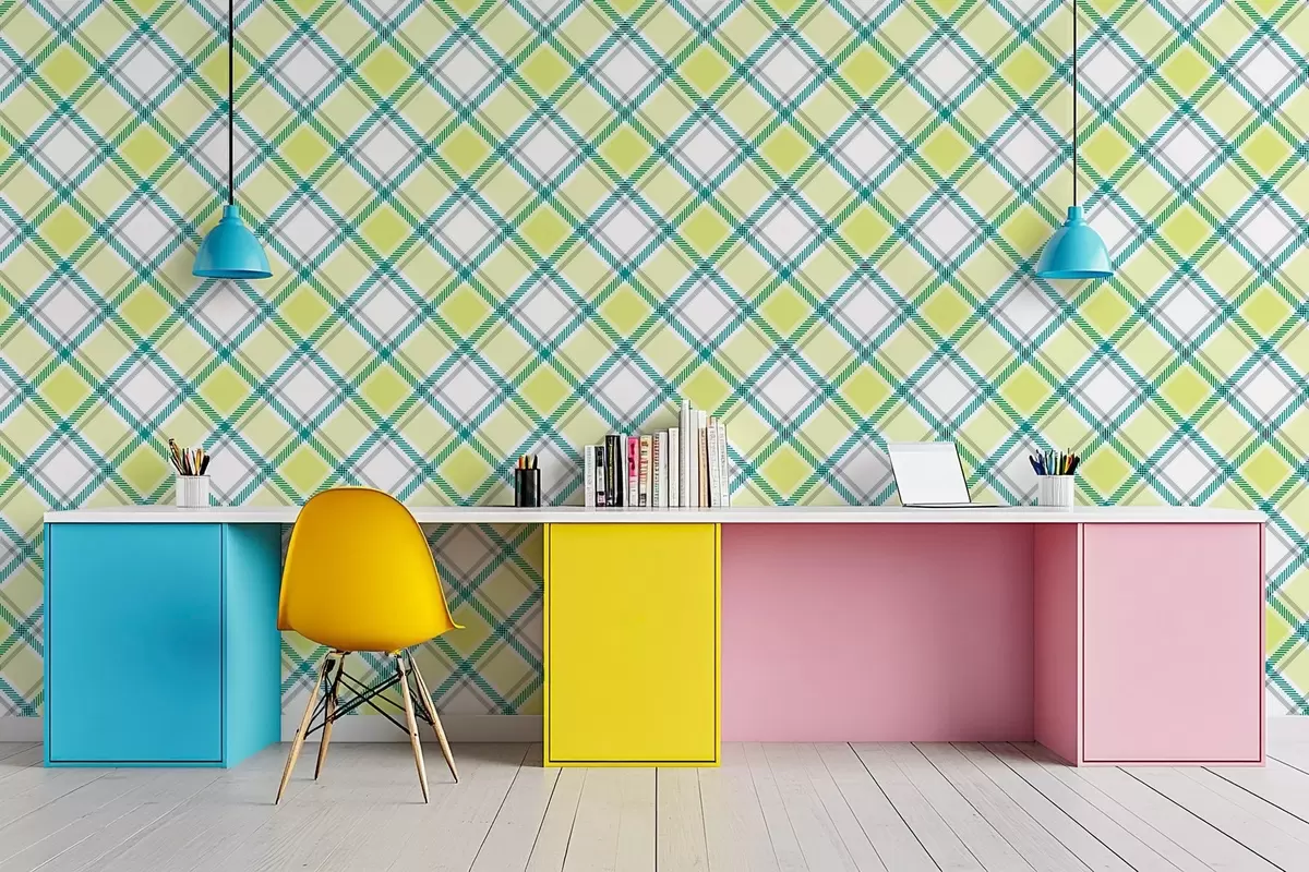 Papier peint motif à carreaux dans les tons jaunes N° w04167v1