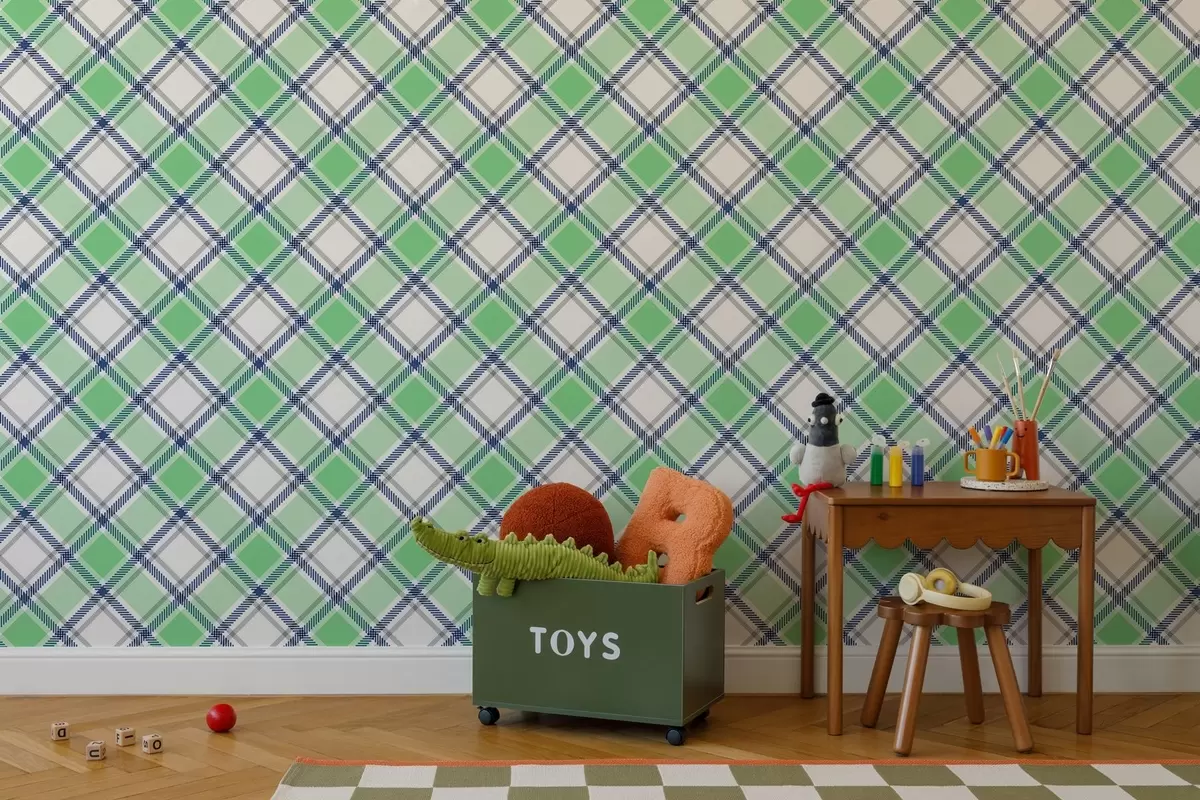 Papier peint motif à carreaux dans les tons verts N° w04167v2