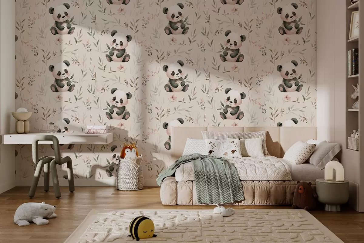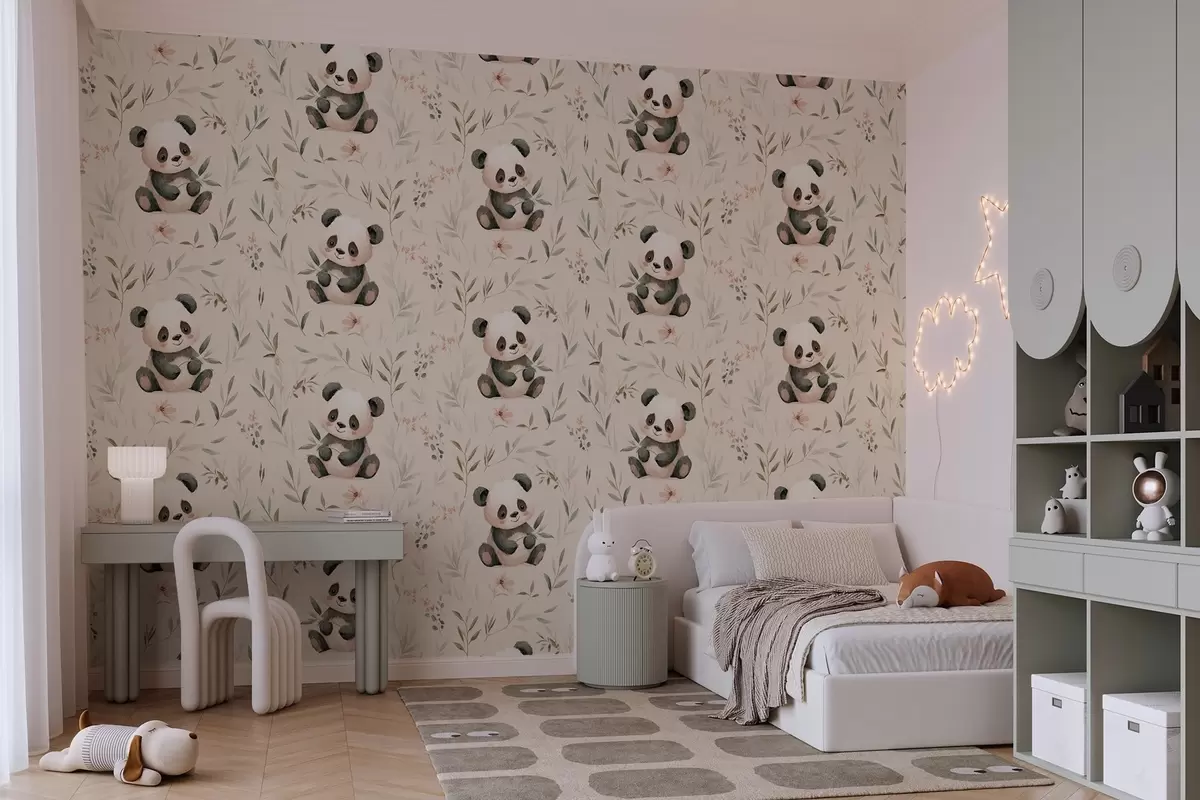 Papier peint d'adorables bébés pandas parmi les plantes N° w04170